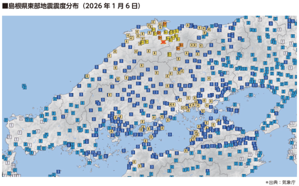 2. 1月6日、島根県と鳥取県で震度5強の地震が発生