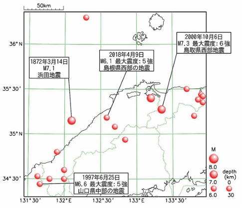 2. 1月6日、島根県と鳥取県で震度5強の地震が発生